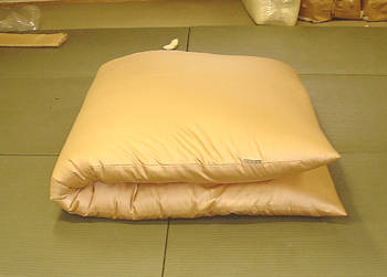 敷きふとんは寝心地を考えて中心をやや高くします。機械仕立てと違うところです。