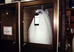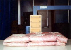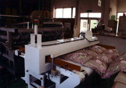 検針機によりふとんに針が残っていないか検査します。